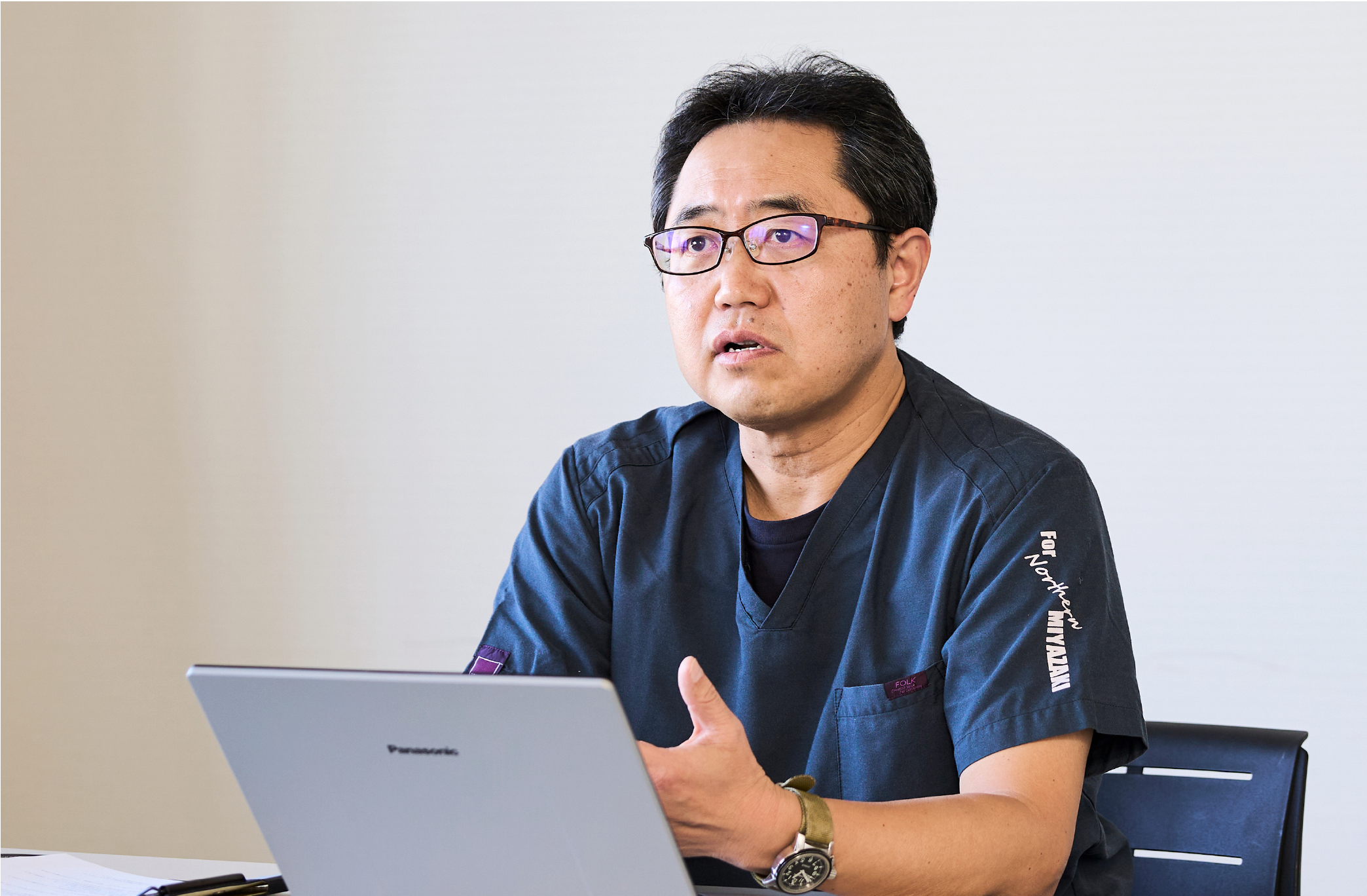 輸⾎を依頼しても到着まで3時間。⾼次医療機関へ転院するとなれば、延岡まで⽚道1時間半、宮崎市内なら2時間半。医師1⼈で 当直する休⽇に転送に出れば、半⽇以上、地域が医師不在になる。そんな現実と向き合っていました。