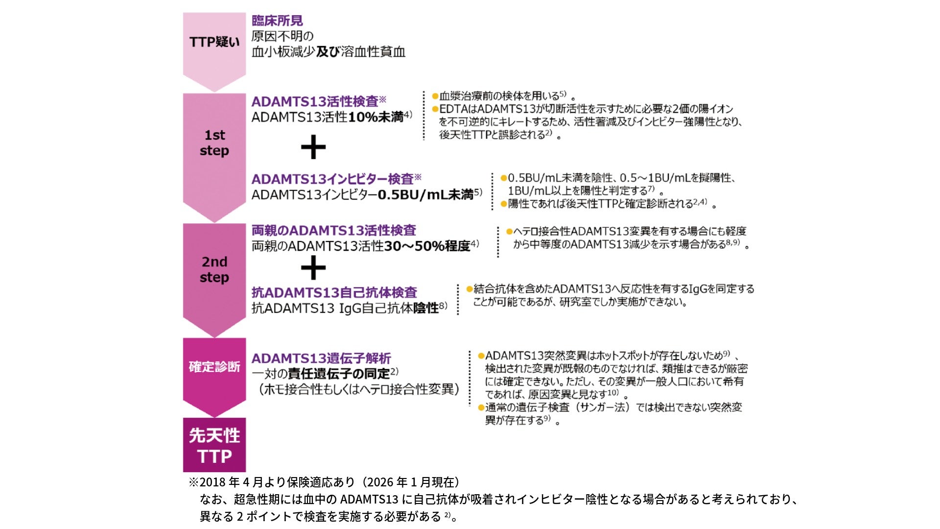 先天性TTPと後天性TTPでは治療法が大きく異なるため、その診断が重要となる。